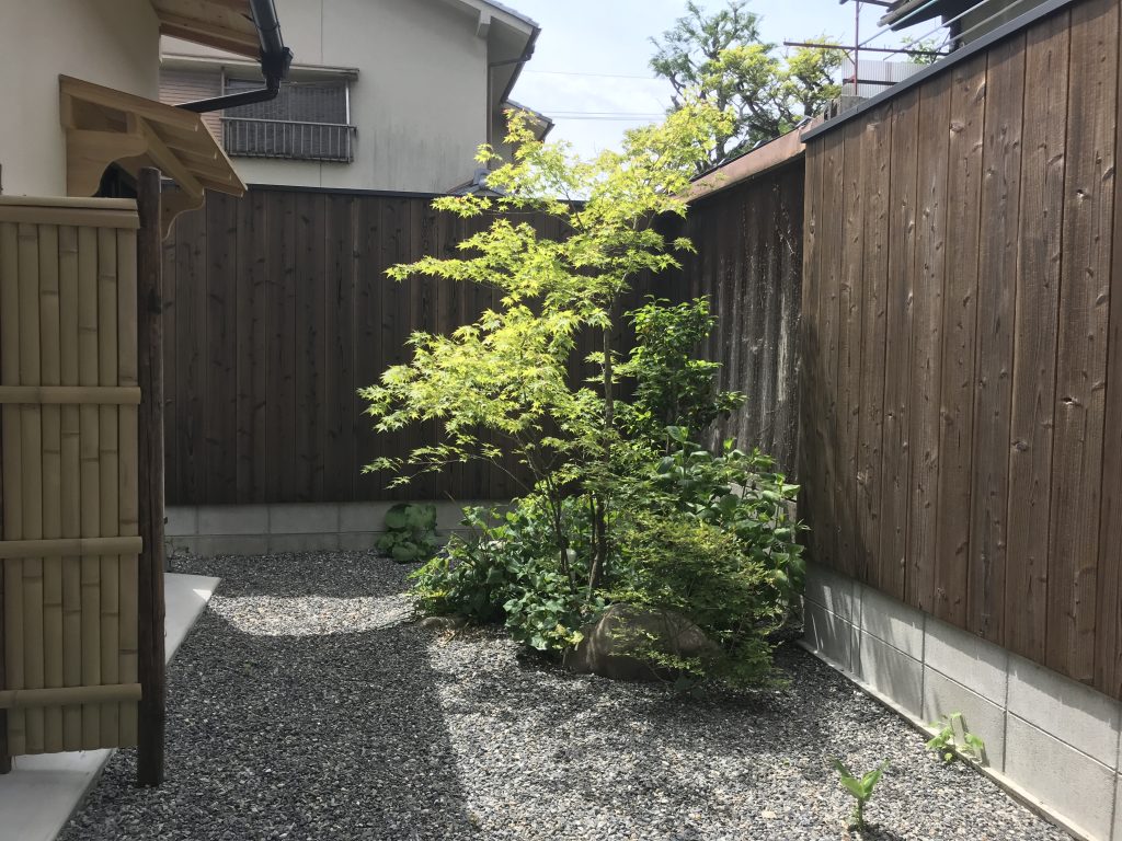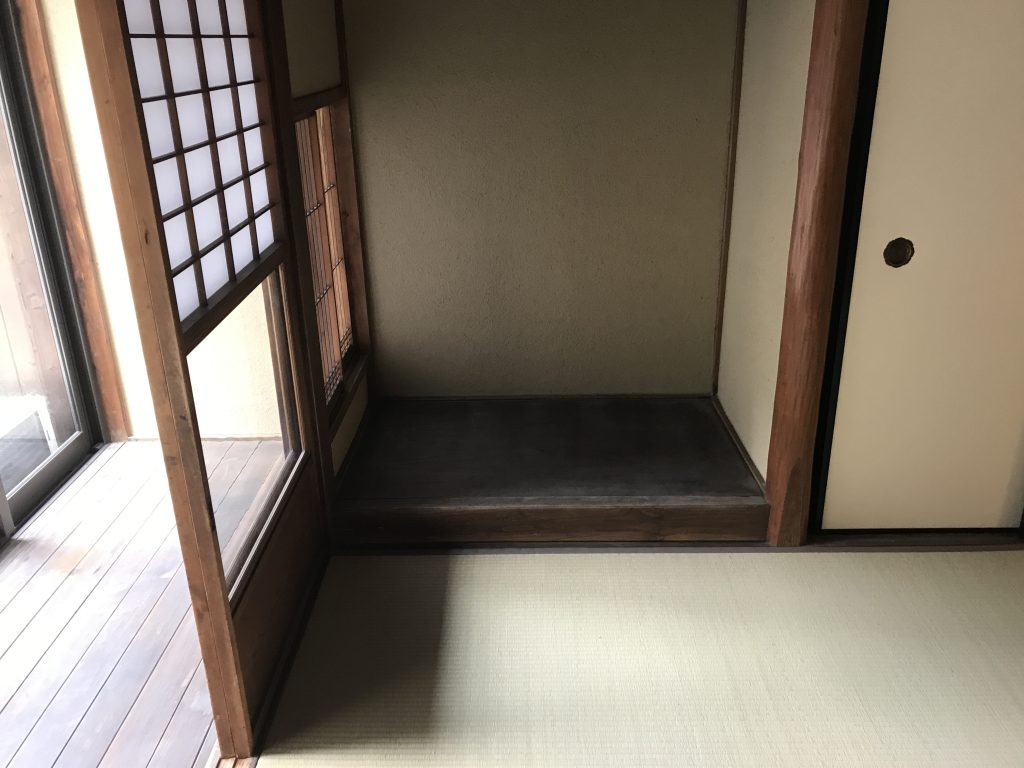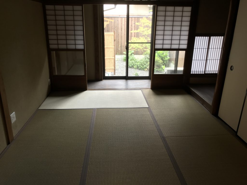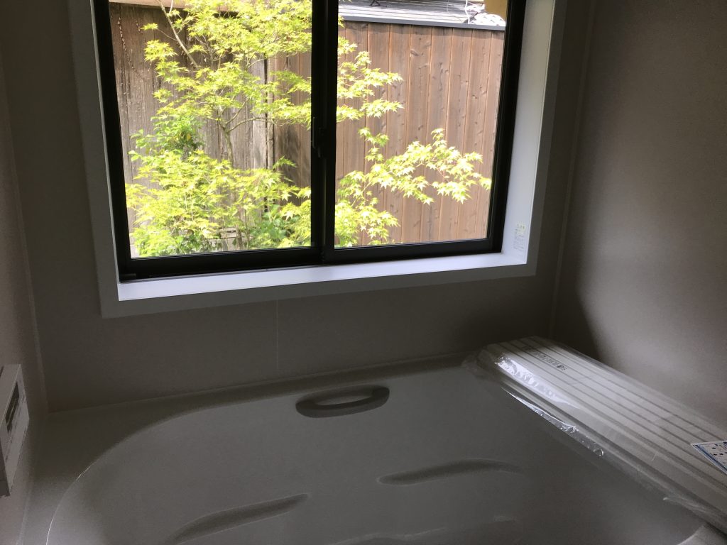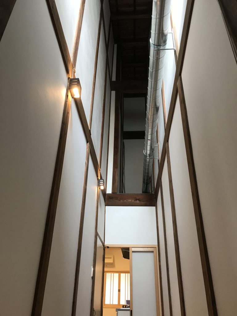 東西に開口を設け西側奥には京町家の重要な要素である坪庭を持つ。浴室から望むライトアップされた坪庭は京都ならではの町家の雰囲気を味わえます。